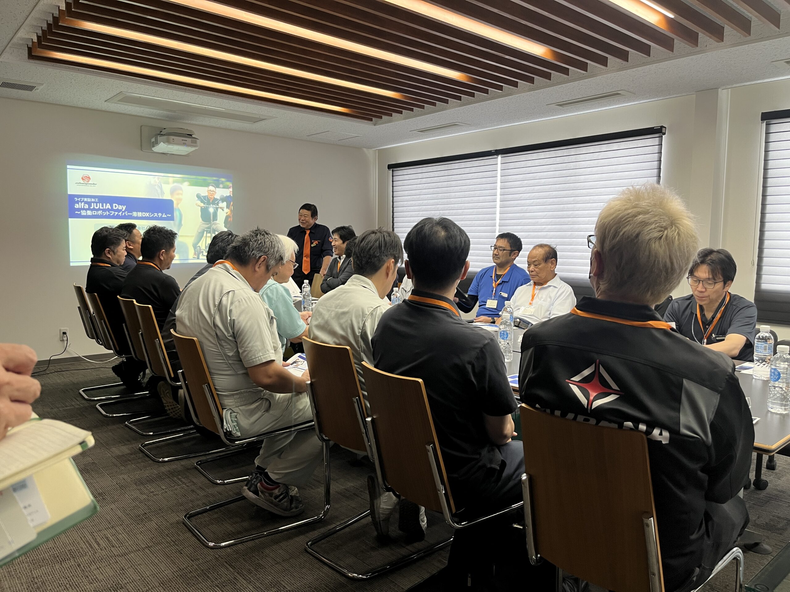 2025年10月3日(金)、当社にて「alfaJULIA day」が開催されました。株式会社アルファTKG様およびユアサ商事株式会社様による主催で、協働ロボットファイバー溶接DXシステム「alfaJULIA」導入に関する講演と実機デモンストレーションを実施しました。