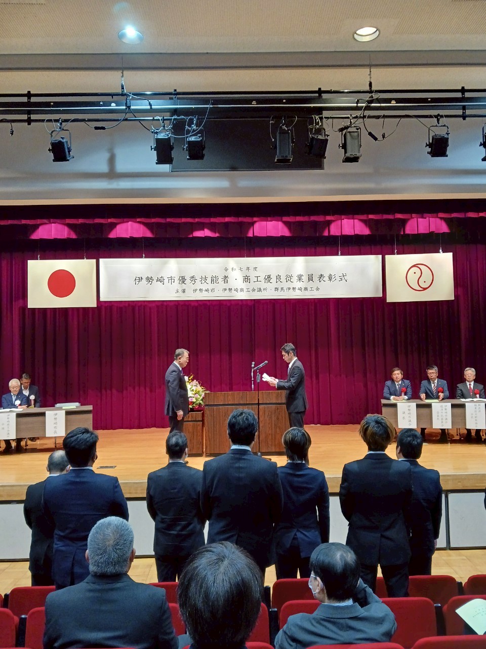令和7年(2025年)10月に伊勢崎市民プラザで開催された表彰式では、市内の各企業・事業所から選出された多くの方々が出席し、長年にわたる努力と実績に対して盛大に功績が称えられました。