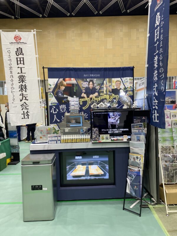 当社ブースでは、島田工業が手掛ける自社開発製品「ブロック型純氷製造機 透美氷-TOMIKO-」の展示や、バーチャル工場見学の様子をご紹介し、製品や技術に関心をお寄せいただいた企業様と、積極的に交流させていただきました。