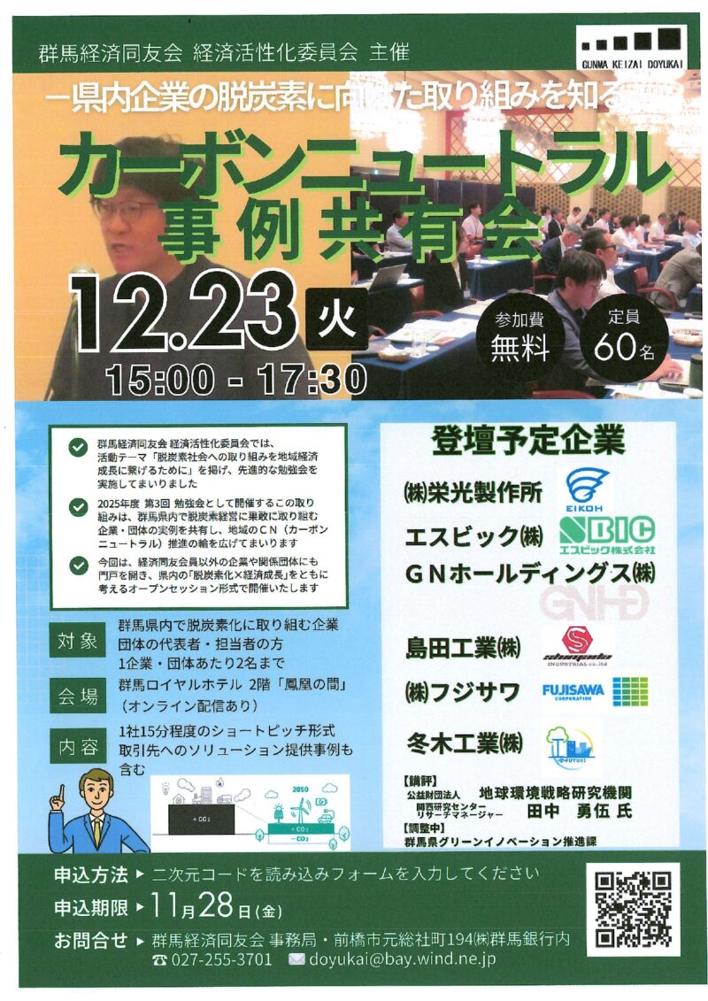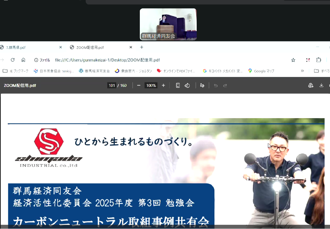 このたび、群馬経済同友会 経済活性化委員会主催「カーボンニュートラル事例共有会」において、当社・島田工業株式会社の環境ISO管理責任者が、島田工業を代表して登壇いたしました。
