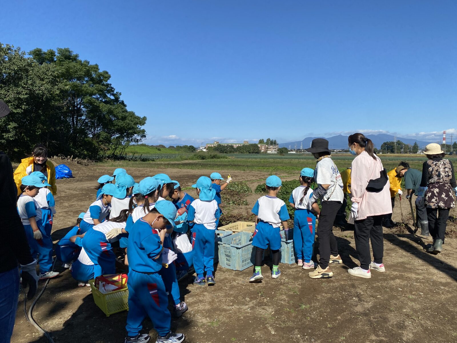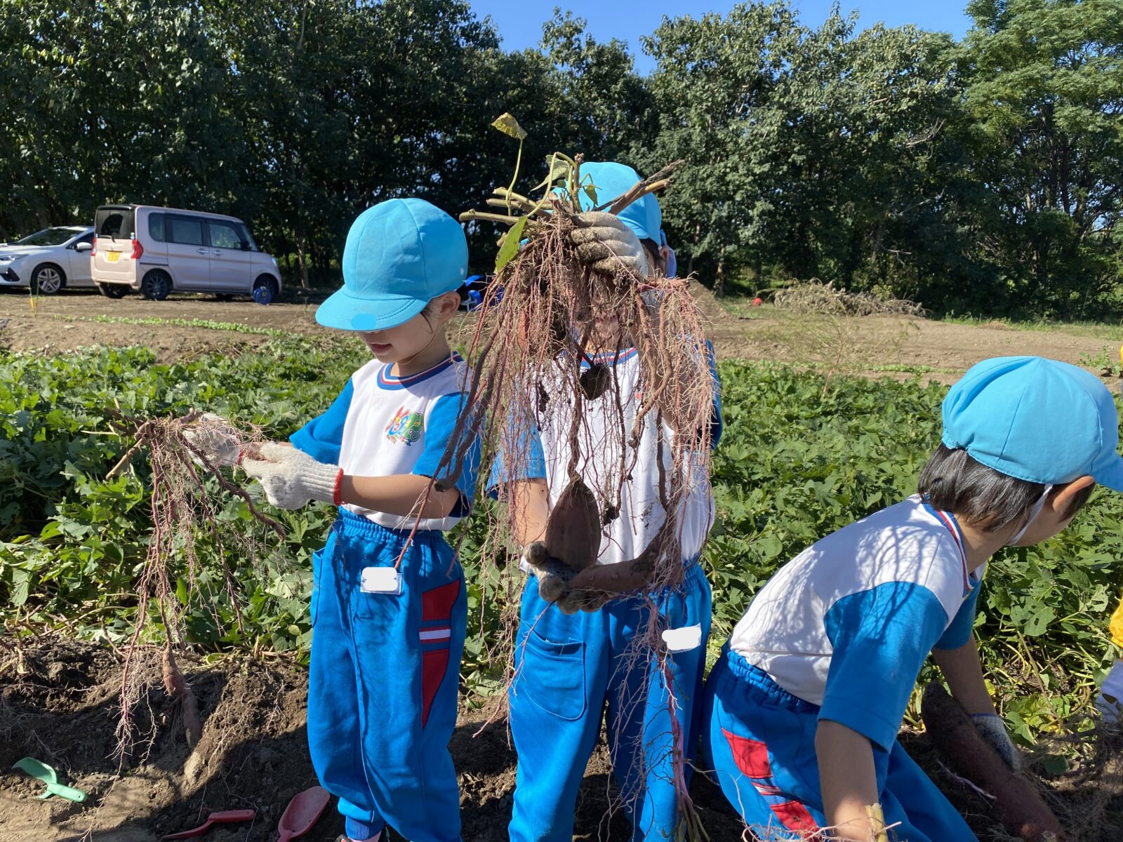 当日は天候に恵まれ、秋晴れの中、子どもたちは夢中になって土を掘り、大きな芋を見つけて笑顔いっぱい。